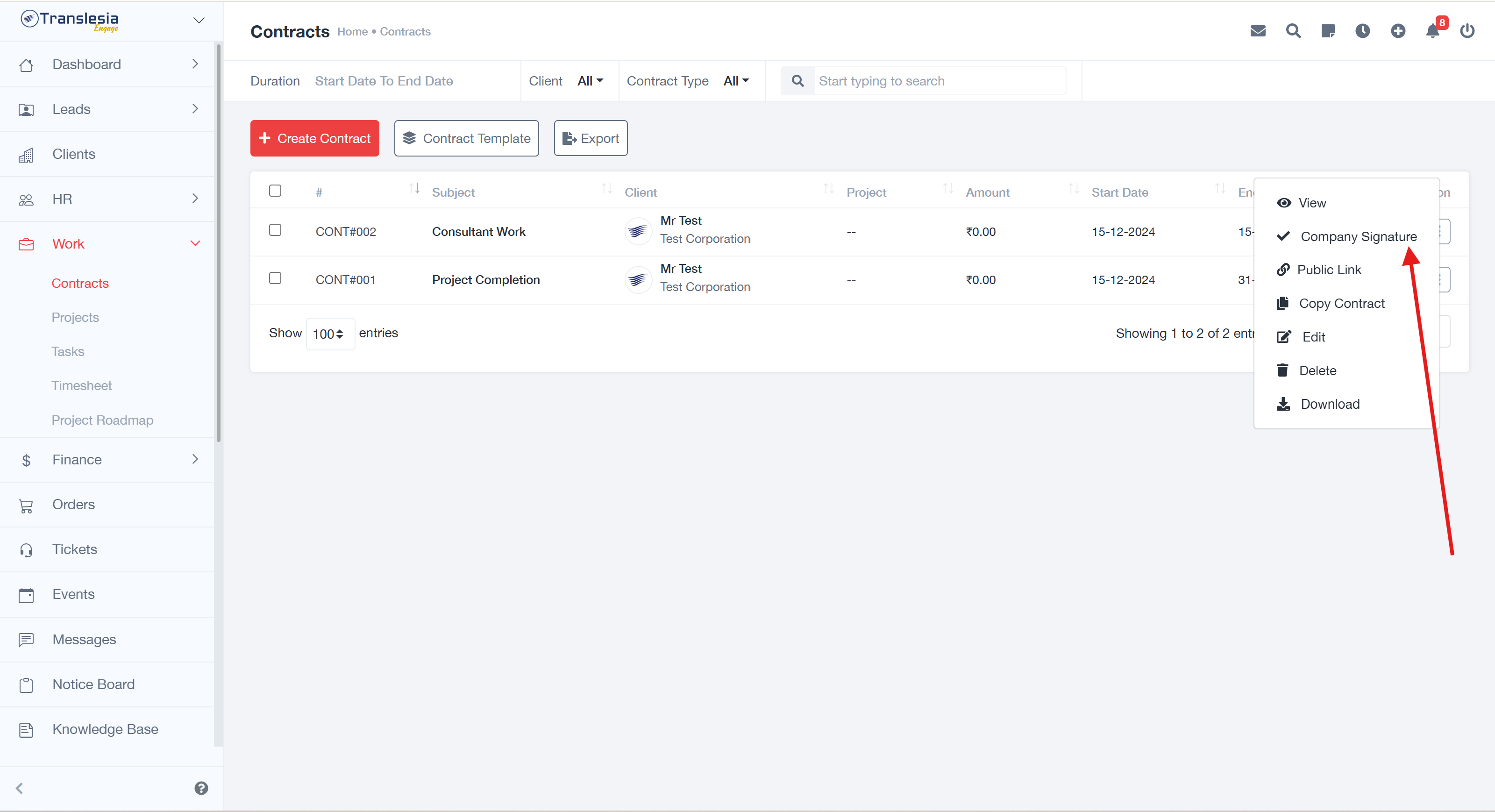 > **Path**: Work > Contracts > Action Toggle Before a Contract > Company Signature